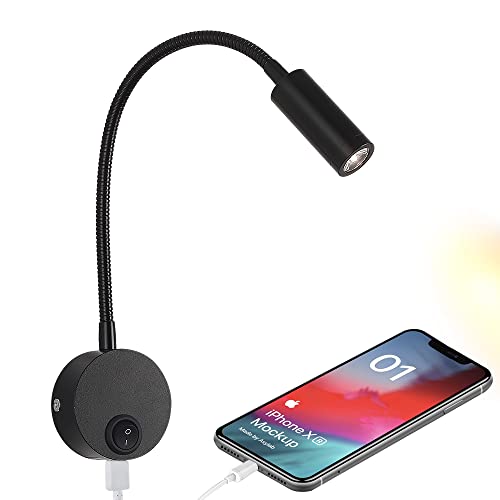 Lampe de lecture murale LED, lampe de chevet flexible, 3000K...