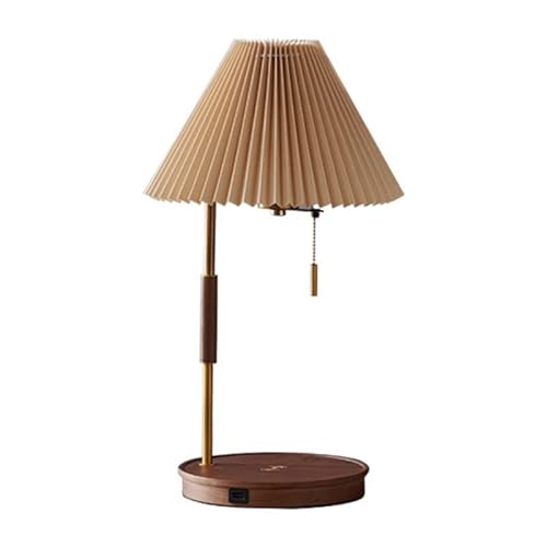 Lampe de chevet sans fil, USB, en bois tissu plissé