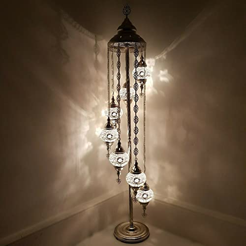 Lampe de sol turque arabe, mosaïque Tiffany argentée, style...
