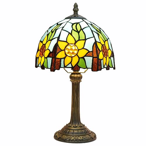 Blivuself Vitrail Lampe de Table avec Fleurs et Soleil Bleu