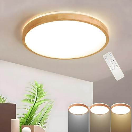 WayLuoung Plafonnier LED Bois | Ø50cm 3000-6000K 36W | Lampe...