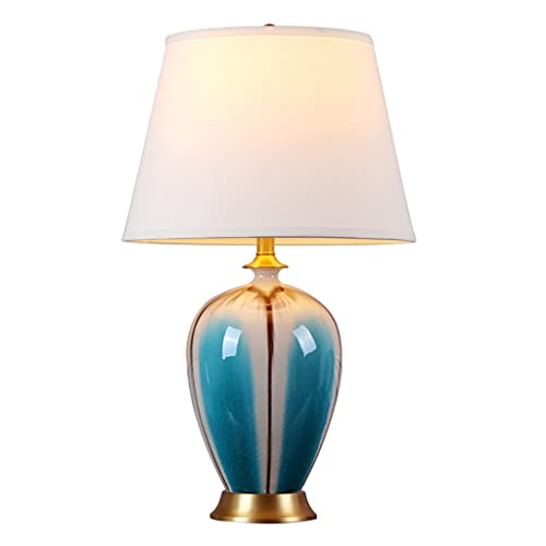 Lampe de chevet de table en céramique avec abat-jour en tiss...