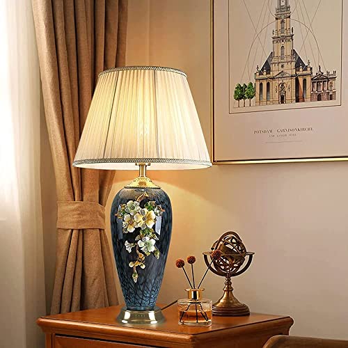 Lampe de chevet moderne en céramique bleu avec guirlande lum...