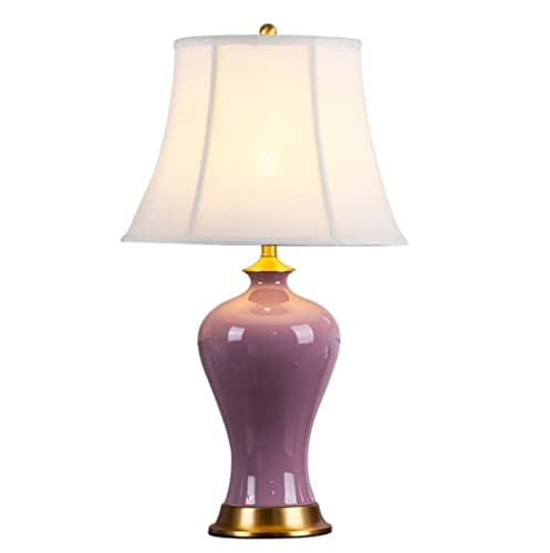 Lampe Rose Céramique 40x33 cm Tablette avec Abat-Jour en Cot...
