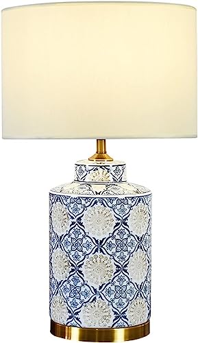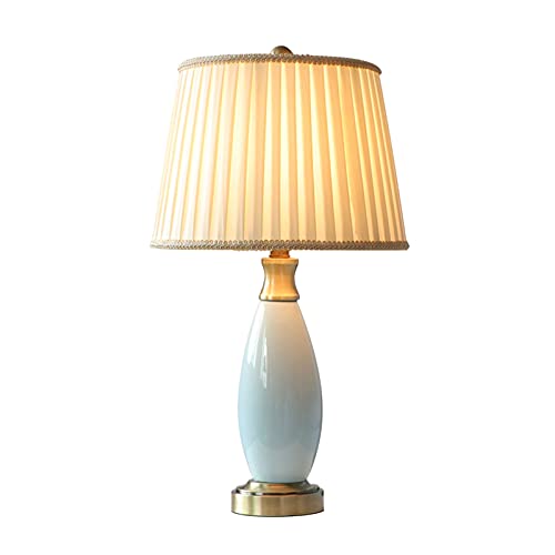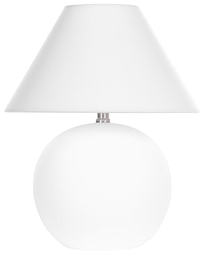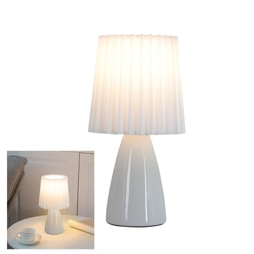 Lampe de Chevet Blanche Céramique Brillante avec Abat-Jour e...