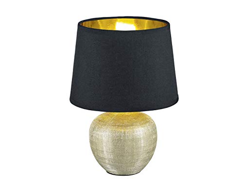Lampe de table LED céramique avec abat-jour en tissu doré