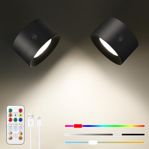 Applique murale télécommande RVB sans fil, 2pcs, lampe rotat...