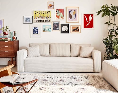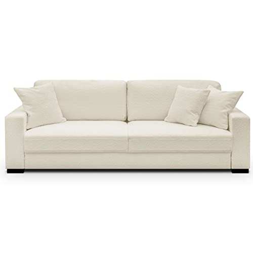 Canapé Convertible 3 Places en Tissu Bouclette écru avec Cof...