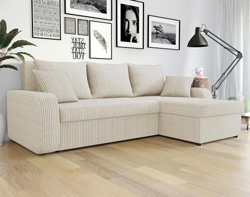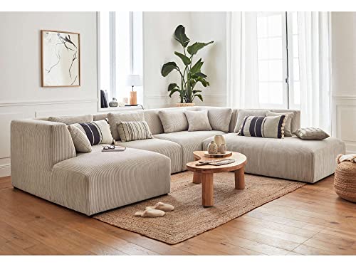 Homécanapé angle convertible 5 places velours côtelé beige c...