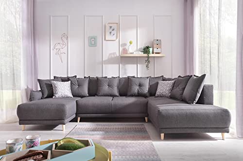 Onyx Panoramique Canapé d'Angle Gauche 7 Places Tissu Gris