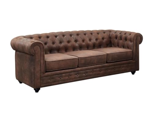 Vente-unique - Canapé 3 Places Chesterfield en Microfibre As...
