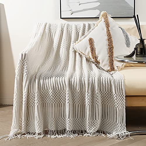 LumiSyne Couverture Tricotée Gland Jetés De Lit Couleur Soli...