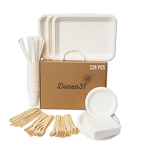 Jetable Canne à Sucre & Bambou 228Pcs Kit Complet Biodégrada...