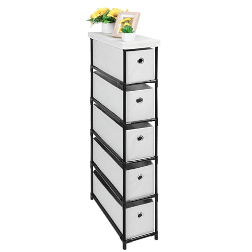 LIANTRAL Commode à 5 tiroirs, cadre en métal et tiroirs en t...