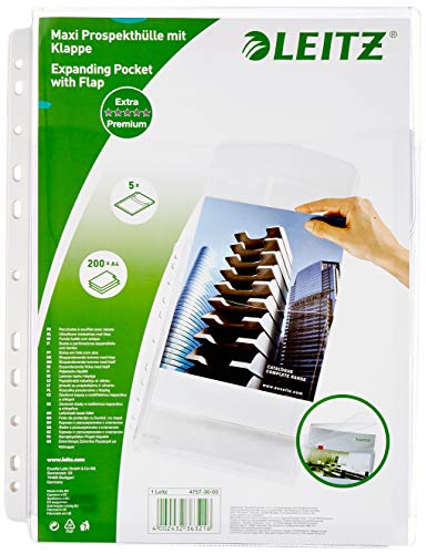 Leitz Premium, Pochettes Plastique Perforées A4 à Soufflet,...