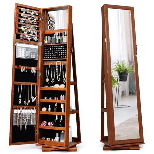 Armoire à bijoux pivotante 360°, grand miroir Psyché et étag...