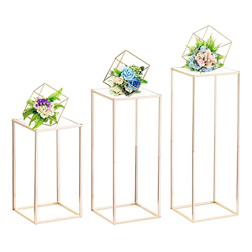 Nuptio Vase Doré 3 pièces Grand Fleurs Support Colonne Géomé...