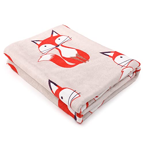 Couverture Fox Pattern Queen Size Mignonne Soft Beige