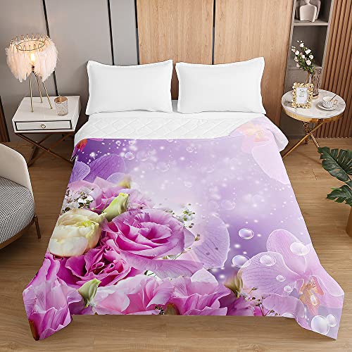 Chickwin Couvre-lit microfibre rose fleur imprimé, couvertur...