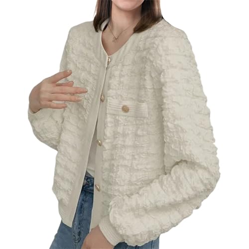 Jyhmzg Blanc Veste ample tweed polyvalente femme
