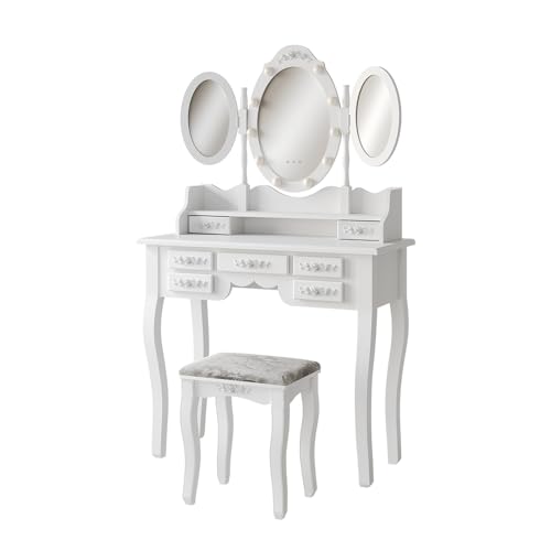 Vicco Coiffeuse Blanc 85 cm éclairage tabouret