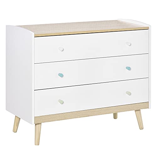 Commode 3 tiroirs Scandinave MDF Blanc Effilé