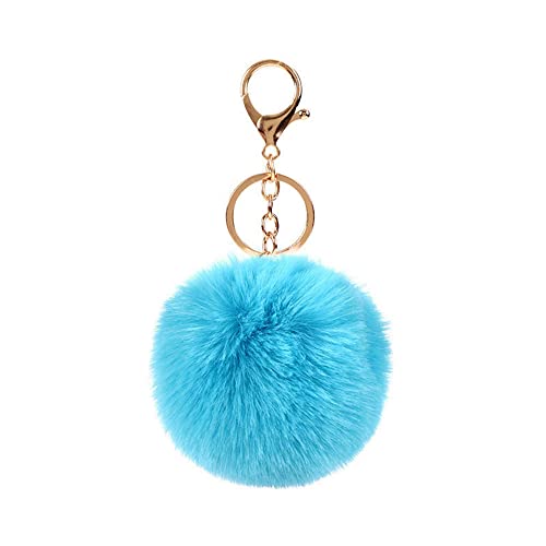 Porte-clés de Noël en peluche bleu avec pompon doux, 6.3''