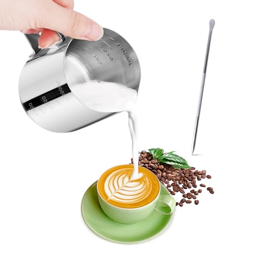 VFAND Pot à lait 350ml Inox, Pichet mousseur, Convient pour...