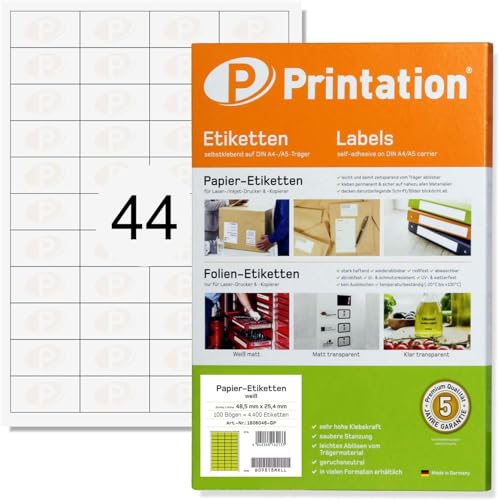 Printation 4780 4474 Lot 1000 Autocollantes Blanc 48.5x25.4...