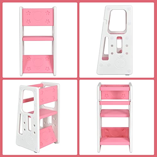 GOPLUS Tour d'apprentissage pour enfants 18-60cm, Escabeau s...