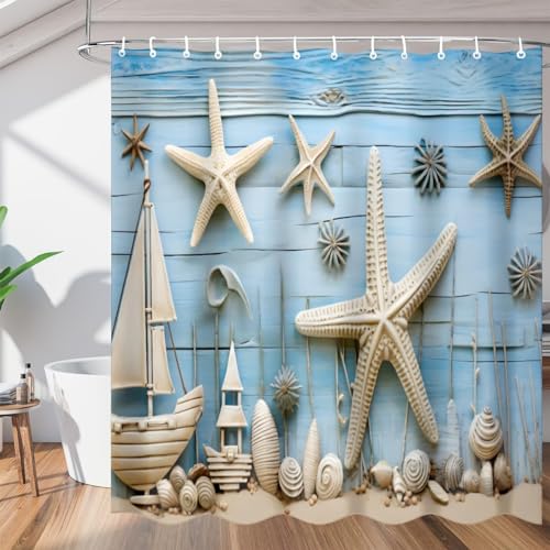 Rideau Anti Moisissure Étoile de Mer 240x200 cm Bois Bleu La...