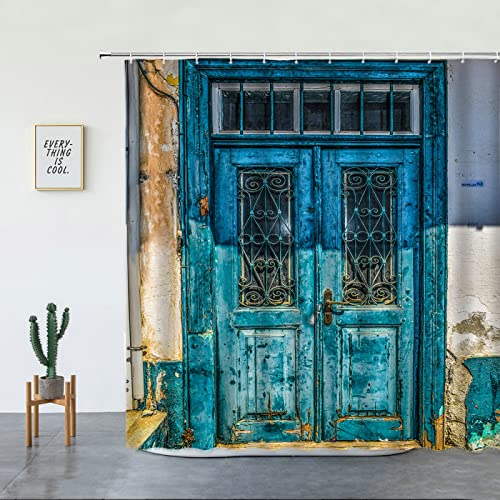 Uiioazy Rideau Douche Bleu Turquoise Effet Marbre Doré Anti...