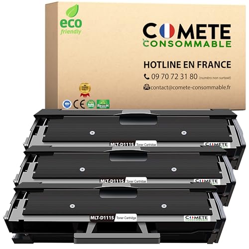 Comète Pack de 3 Toners Compatibles Samsung D111S Noir
