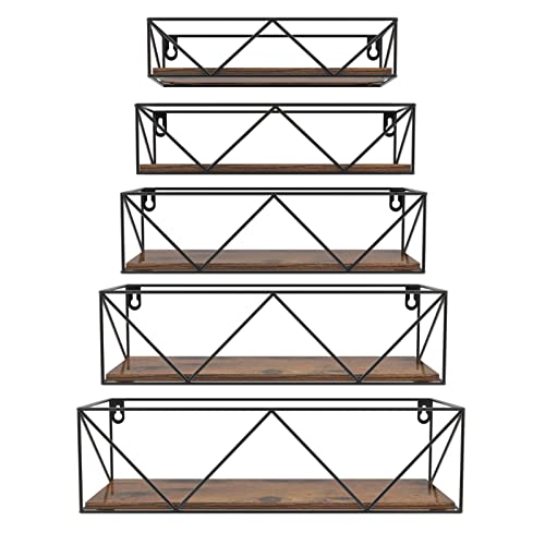 Lot de 5 Etagères Flottantes en Bois Marron et Fer Noir, Hau...