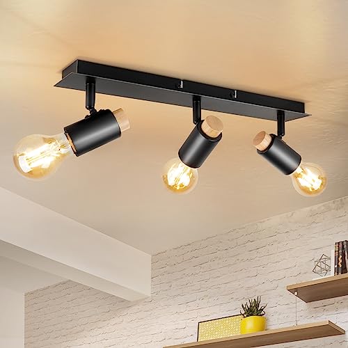 【Plafonnier Noir Bois】Luminaire plafonnier spot led bois m...