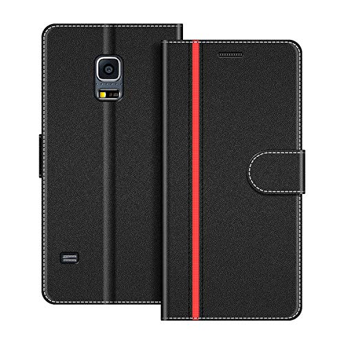 CODIO Étui Cuir pour Stand Samsung Galaxy S5 Mini Noir/Rouge
