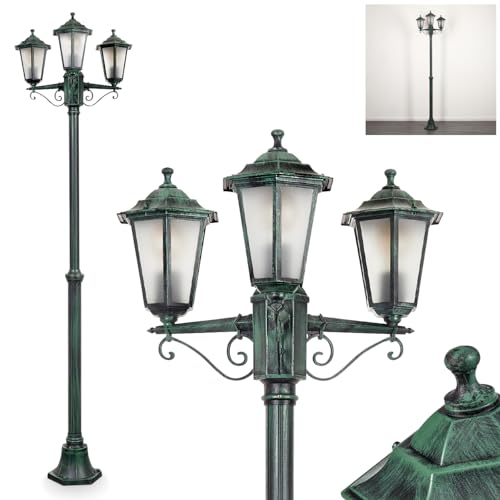 Luminaire extérieur Loria, lampadaire métal/verre noir/vert,...