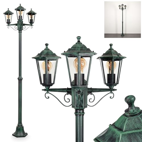 Luminaire extérieur Loria, lampadaire métal/verre noir/vert...