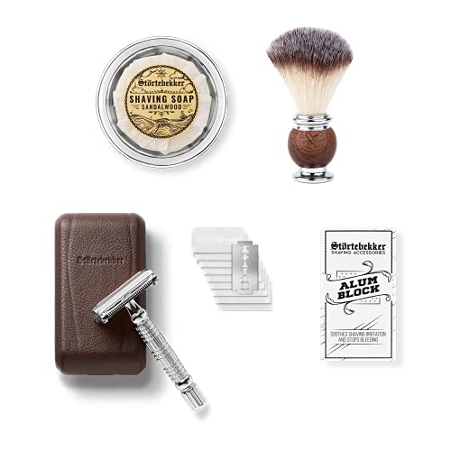 Rasoir de sûreté cuir étui blaireau bol raser savon alun lam...