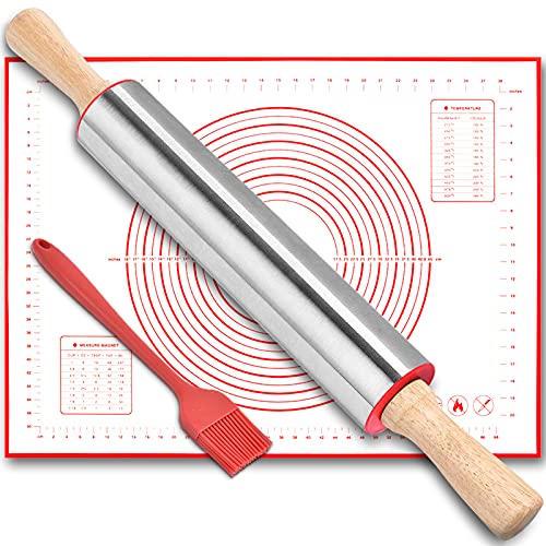 KERYCHIN Rouleau a Patisserie en Inox avec Poignées Bois plu...