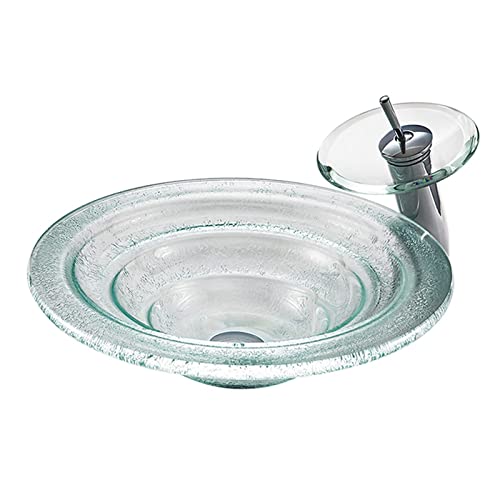 ROLTIN Lavabo de comptoir Rond Simple en Verre trempé de 15...