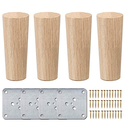 Vanes 6 pouces Pieds de Meuble Bois Naturel Rond, 4 Pièces,...