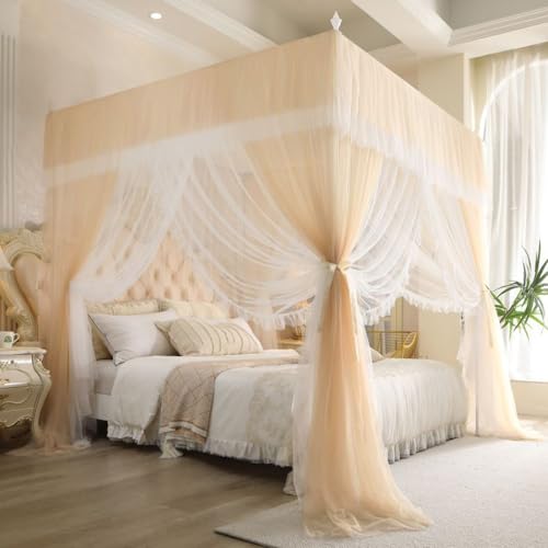 PFKXQBX Moustiquaire à baldaquin carré en dentelle à 4 coins...