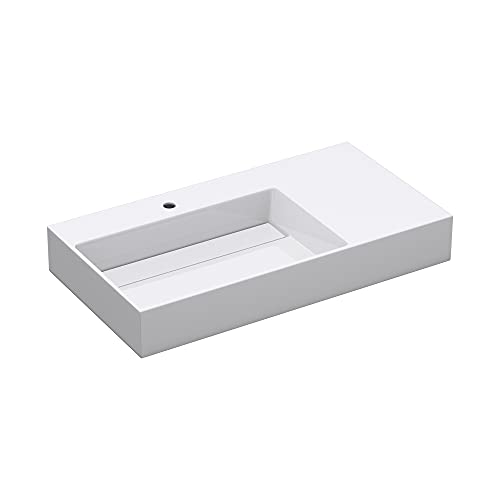 Sogood Lavabo Suspendu Blanc 90cm Vasque à Poser Lave Mains...