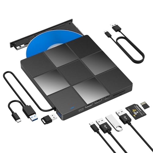 Lecteur CD/DVD Externe USB 3.0 Type-C, Lecteur SD/TF/USB DVD...