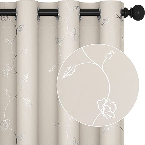 Deconovo Lot 2 Rideau Occultants Oeillets Argente Beige 132x...