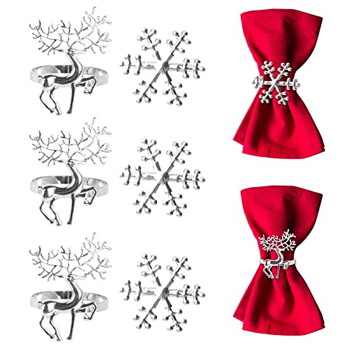 Lot de 8 ronds de serviette argentés en forme de flocon de n...