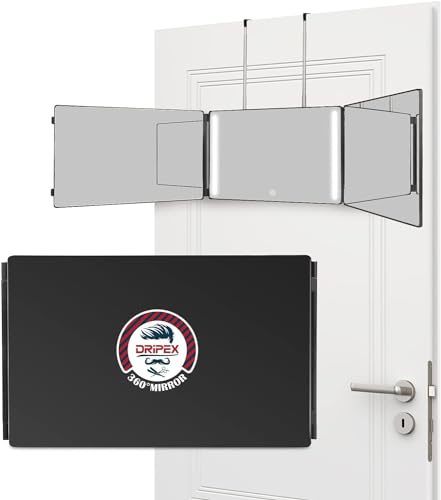 Dripex 360°C Miroir à Coiffure, 3 Faces Pliable Barbier LED,...