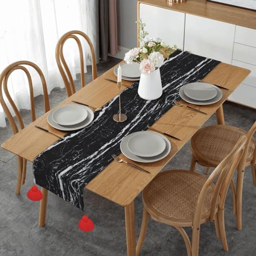 Chemin de table exquis en marbre noir et blanc – Design impr...