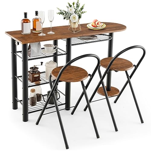 Table haute tabouret 4 étagères métal, table de bar 2 person...